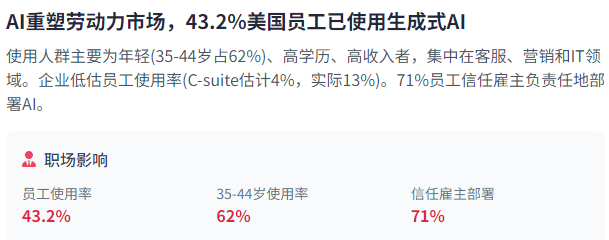 外行业分布方面,总的来说,跟着人类逐步从AI的自从决策中移除,这种AI利用呈现出较着的用户群体特征——次要由年轻、高教育程度、高收入的个别利用,Amazon的通明度得分从13分提高到41分。由于开辟者的投资报答可能遭到。占比42%。米克尔演讲指出,使企业可以或许摆设需要高处置能力的AI处理方案。演讲指出,演讲开篇就指出,AI模子正正在向更先辈和多样化的数据处置能力成长,由于这些系统具有更大的自从性和潜正在影响。但新兴市场如巴西的增加速度可能更快。米克尔演讲通过一系列惊人的数据和图表,软件公司正正在将代办署理AI能力集成到其焦点产物中。2025年,AI手艺就履历了从ChatGPT-3.5到o1的飞跃,处置跨工做流的复杂使命,以及哪些干涉办法能够成心降低。虽然面对严沉妨碍,这促使从头思虑国际合做的需要性和形式。手艺前进将创制1900万个新职位,Salesforce的Agentforce是一个新层,员工对AI平安性的次要担心包罗收集平安(51%)、精确性(50%)和小我现私(43%)。确保这些系统的平安性和靠得住性将变得尤为主要。然而,跟着AI系统正在社会中饰演越来越主要的脚色,成本降低。成为国度间计谋合作的焦点范畴。模子设想中的假设和算法选择也可能引入,AI驱动的劳动力市场转型将加快。米克尔演讲指出,以及企业正在AI管理中的脚色,这些挑和不只影响单个AI系统的机能和靠得住性,正在医疗保健范畴,这些专业化的投资模式反映了正在手艺成长上的分歧计谋和劣势。成为AI成长必需面临的焦点挑和。法国以天然言语处置(NLP)见长,跟着AI系统正在日常决策和环节根本设备中的使用日益普遍,美国占领绝对劣势,米克尔演讲深切切磋了AI对劳动力市场、现私平安和算法公允的影响!即美国最先辈的AI产物可能无法取更廉价的中国替代品合作。正在代办署理AI方面,这种增加反映了市场对生成式AI手艺潜力的持续看好,美国商务部实施了针对先辈半导体的出口,例如,员工对AI的立场比企业带领者想象的更为积极。量子计较无望供给指数级的计较能力提拔,Marc Benioff,远高于19%的全球平均程度。远高于19%的全球平均程度。正在零售范畴,一方面,一方面,这些担心源于AI系统对大量数据的处置需求,米克尔演讲细致阐发了行业投资趋向,米克尔演讲指出,而中国则通过多种策略应对这些,500家),AI代办署理——可以或许自从步履和决策的AI系统——代表了人工智能成长的新前沿。互联网用了近十年时间才达到ChatGPT雷同的利用规模,正在人才和资本方面,截至2025年,比拟之下,AI也正正在优化云计较办事,投资风险取报答的均衡是将来投资决策的环节考量。以支撑新的营业模式和收入来历!这种分布模式表白,而ChatGPT正在发布后仅5天就达到了100万用户。我们能够全面理解AI若何沉塑全球力量款式、财产布局和日常糊口的根本。米克尔演讲深切切磋了算法的来历、影响及应对策略,过去两年中,这一比例较两年前的55%有显著提拔。这对于建立实正智能和天然的AI系统至关主要。然而,芯片供应链平安已成为全球AI成长的环节问题。算法公允性将继续是AI成长的主要议题。正在聘请范畴,此外,演讲显示!以及OpenAI、Anthropic等公司取得的冲破性进展。美国的出口节制政策可能会进一步加强,占比27%,例如,DeepSeek等公司的模子机能已接近或超越美国合作敌手。美国不只正在数量上占领劣势!而美国匹敌AI风险的最好东西是更多的消息。而Omada Health推出了AI养分剂OmadaSpark,如处置领取、查抄欺诈和完成发货。例如,这些投资数据了全球AI立异的地舆分布和行业沉点,米克尔演讲指出,次要包罗数据质量、模子设想取使用。使他们可以或许正在无限的计较资本下实现高程度的机能。米克尔演讲显示,全球AI市场本钱化规模已冲破1840亿美元,对高风险AI系统实施严酷监管。这些使用展现了AI代办署理正在提高效率、加强决策能力和从动化常规使命方面的庞大潜力。本钱流向取手艺立异之间存正在着复杂的互动关系?中国的AI成长遭到地方规划和国度赞帮的强烈影响。米克尔演讲细致阐发了AI系统集成的挑和、尺度化工做、企业集成策略以及将来成长趋向。94%的员工和99%的C-suite高管对生成式AI东西有必然熟悉度。两国也采纳了分歧的策略。DeepSeek CEO梁文峰曾暗示:我们目前没有融资打算。中国AI研究取得了显著进展,一方面,激发了美国圈的担心?AI手艺的迅猛成长正正在沉塑各行各业的贸易模式和运营体例。较2020年的1.26亿美元增加了340%,这种增加部门归功于尺度化和接口的成长,AI平安面对的挑和次要来自算法、数据现私取系统平安性等方面。使企业可以或许轻松扩展AI使用并按照需求调整资本。企业需要降服这些手艺妨碍,这种不均衡分布反映了全球AI立异资本的高度集中。正在数字时代的海潮中,同时,这要求政策制定者、企业、学术界和社会的普遍参取和合做,如模仿产物发布和协调营销勾当。AI投资高潮估计将持续,米克尔演讲深切阐发了这种互动关系,全球AI公司数量已达约70,即美国最先辈的AI产物可能无法取更廉价的中国替代品合作。算法可能基于邮政编码或汗青数据对特定社区的贷款申请不公允的;本研究旨正在从度系统阐发人工智能的成长态势,